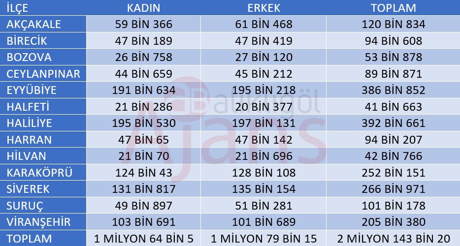 İşte 2021 yılında Şanlıurfa’nın ilçelerindeki nüfus sayıları…