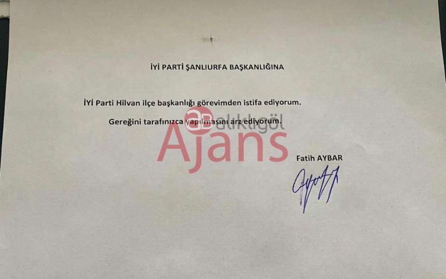 Geçtiğimiz pazar günü kongrede güven tazeleyen Fatih Aybar, dört gün sonra istifa ettiğini açıkladı. İlçe Başkanı Aybar istifa dilekçesini İyi Parti Şanlıurfa il başkanlığına sundu.