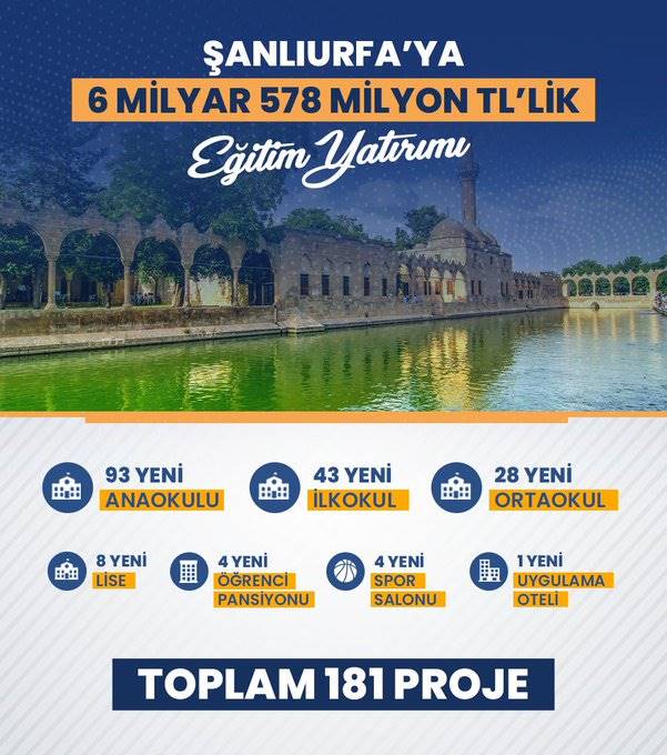 Bakan Özer, ‘’ İlavelerle birlikte toplam tutarı 6 milyar 578 milyon TL'ye ulaşan 181 projeyi yatırım programına aldık. Urfa’mıza hayırlı olsun.’’ Dedi.