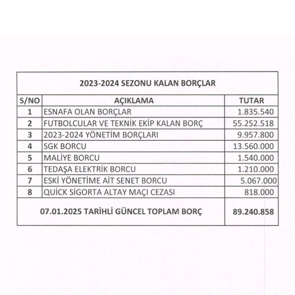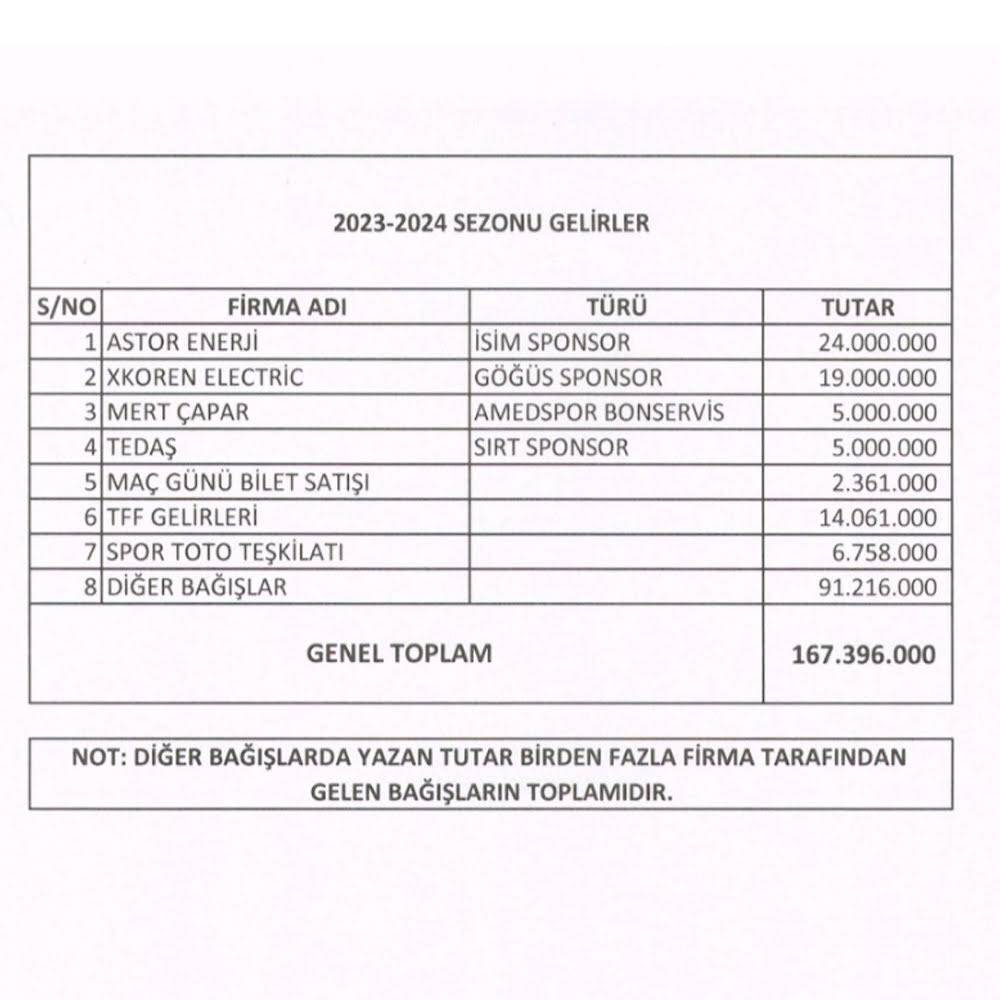 “Söz verdiğimiz gibi şeffaflık ilkesi gereği kulübümüzün 2023-2024 (geçen sezon)sezonu ait tüm gelir gider ve yeni sezona devralınan güncel borç ve ödeme detayları ile ilgili genel durumu kamuoyuyla paylaşılmıştır.”