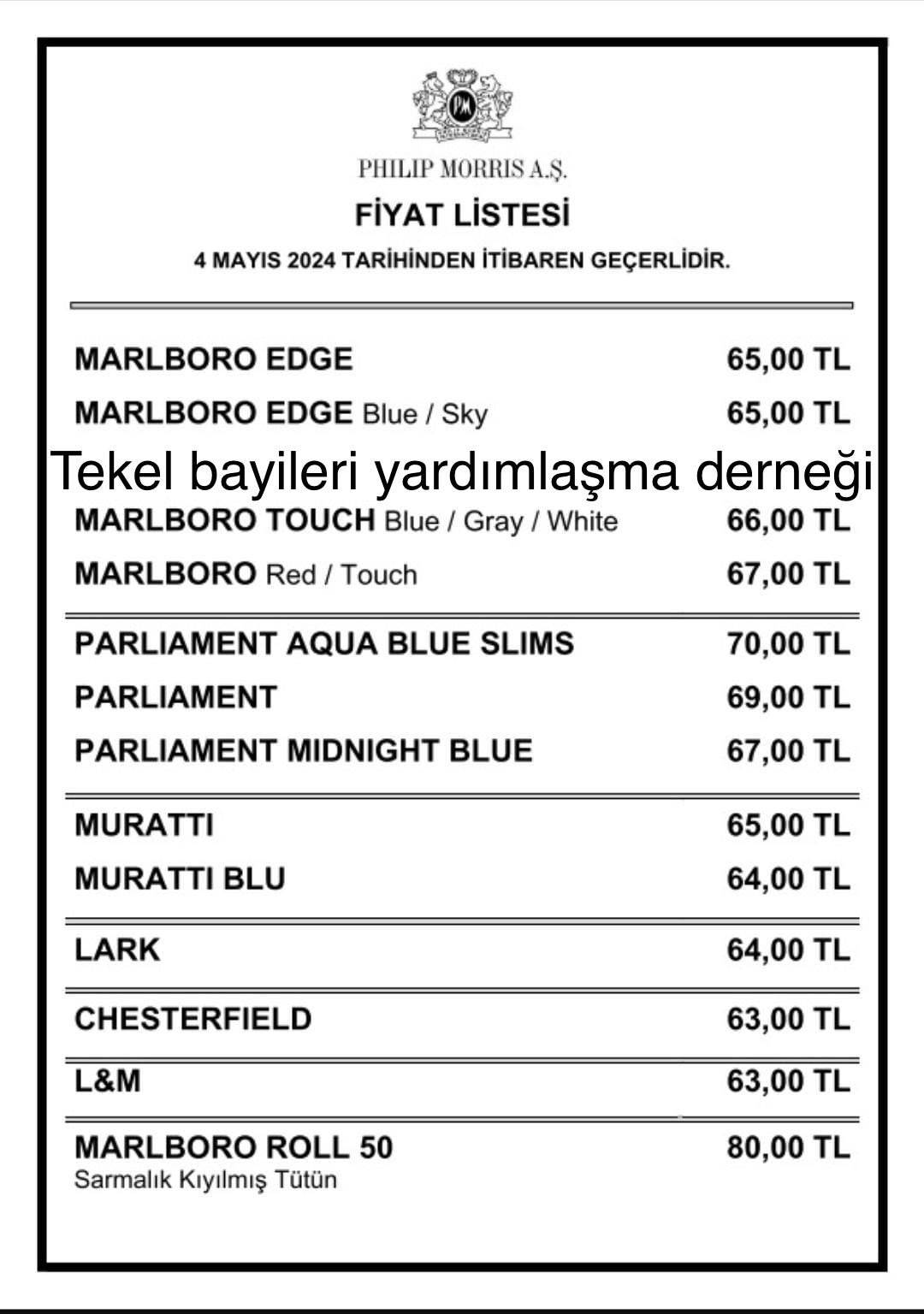 Başkanı Erol Dündar, sosyal medya hesabından yapmış olduğu paylaşımında, PM sigara grubuna 3 TL'lik zam yapıldığını açıkladı. En son bu gruba 5 Nisan'da 8 TL'lik zam gelmişti.