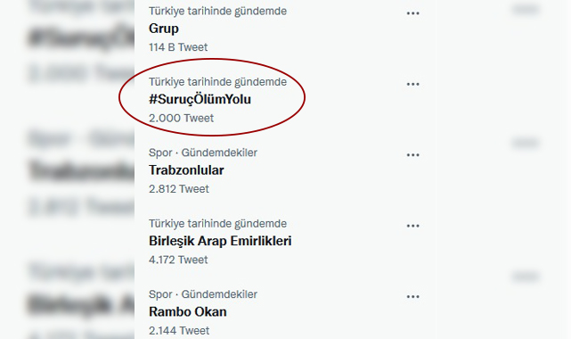Şanlıurfa’da sık sık meydana gelen kazaların ölümle sonuçlandığı ve kamuoyunun ‘ölüm yolu’ olarak nitelendirdiği D400 karayolu sosyal medyada gündem oldu. #SuruçÖlümYolu hashtag’iyle Twitter’da trend topik (TT) listesine giren Şanlıurfa-Suruç yolu için tek yönlü olması nedeniyle kazalara davetiye çıkardığı vurgulandı. HÜDA PAR Şanlıurfa İl Başkanlığı öncülüğünde başlatılan hashtag kampanyasında, trafik kazalarının önüne geçilmesi için yolda bir an önce çalışma başlatılması yönünde çağrılar yapıldı.