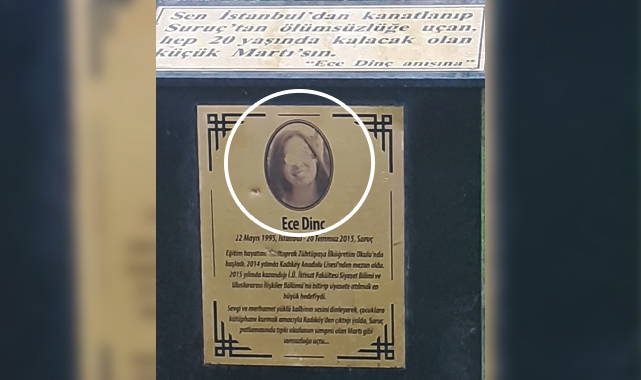 2015’te IŞİD’in Suruç’ta düzenlediği canlı bomba saldırısında hayatını kaybeden Ece Dinç’in mezarı tahrip edildi. 20 yaşında hayatını kaybeden Dinç’in mezarındaki fotoğrafı tanınmayacak hale getirildi.