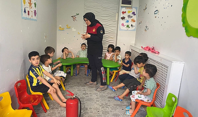 Yaz mevsiminde kreşlerde kalan minik çocuklar ile yönetici ve öğretmenlere yönelik yangından korunma, önlemler ve alınacak olan tedbirleri anlatan ekipler, yangın söndürme materyallerini de tanıtarak öğrencilere, çakmak ve kibrit gibi yanıcı ve parlayıcı maddelerle oynamamaları konusunda uyarılarda bulunuldu.