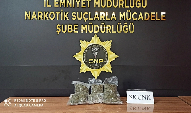 "22/07/2023 tarihinde Narkotik Suçlarla Mücadele Şube Müdürlüğü görevlilerimizce Uyuşturucu Madde Kullanımı ve Satışıyla Mücadele kapsamında yapılan operasyonda durdurulan bir otobüste yakalanan bir şahsa ait bagajda 6 paket halinde toplam 1.250 gram skunk maddesi ele geçirilmiş, olay ile bağlantısı bulunan şüpheli 1 şahıs yakalanarak gözaltına alınmış ve hakkında “Uyuşturucu Madde Ticareti Yapmak ve Nakletmek” suçundan adli tahkikata başlanılmıştır."