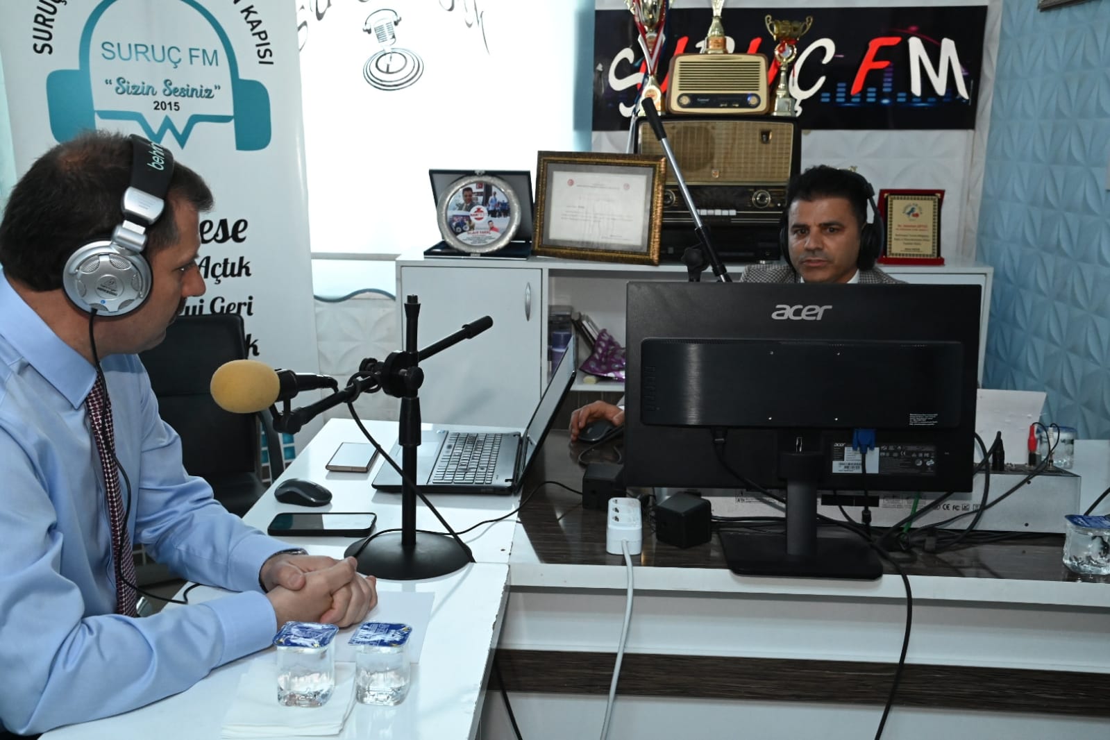 Vali Ayhan, vatandaş sohbetinin ardından Suruç FM, Barış Pınarı FM ve Harran FM tarafından düzenlenen ortak canlı yayın programına katıldı. Burada tüm Suruçlulara seslenen Vali Ayhan, “İlk ziyaretimizde Suruç’tayız. Yiğitler diyarı Suruç’ta devletimizin imkânlarıyla çok güzel projeler gerçekleştirildiğini yerinde gördük. Çarşı ziyaretimizde de vatandaşımızın yüzüne yansıyan mutluluk da bunun bir yansımasıdır. Şanlıurfa merkezde olduğu gibi Suruç’ta da gençlerimizin potansiyelinin yüksek olduğunun farkındayız. Bu potansiyeli akademik anlamda güçlü bir şekilde destekleyeceğiz. Çocuklarımız bir cevher ve onları çok iyi bir şekilde işleyeceğiz. Biz çocuklarımıza inanıyoruz, onlara imkân sağlandığı takdir de neler başarabileceğine inancımız tamdır. Bunun içinde çok güzel projelerimiz olacak. Hep birlikte Suruç için, Şanlıurfa için el ele verip çalışacağız” dedi.