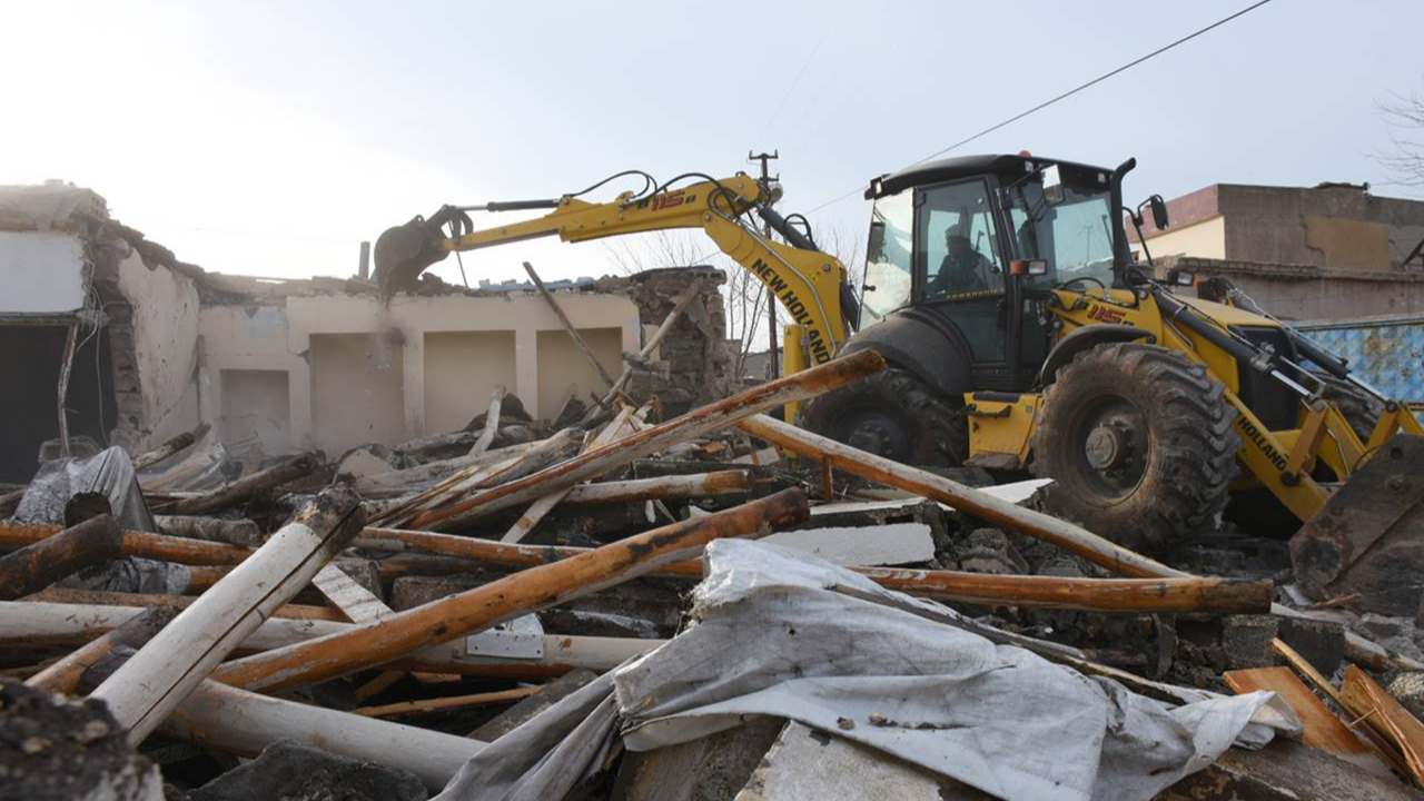 hilvan da agir hasarli konutlarin yikim calismasi devam ediyor