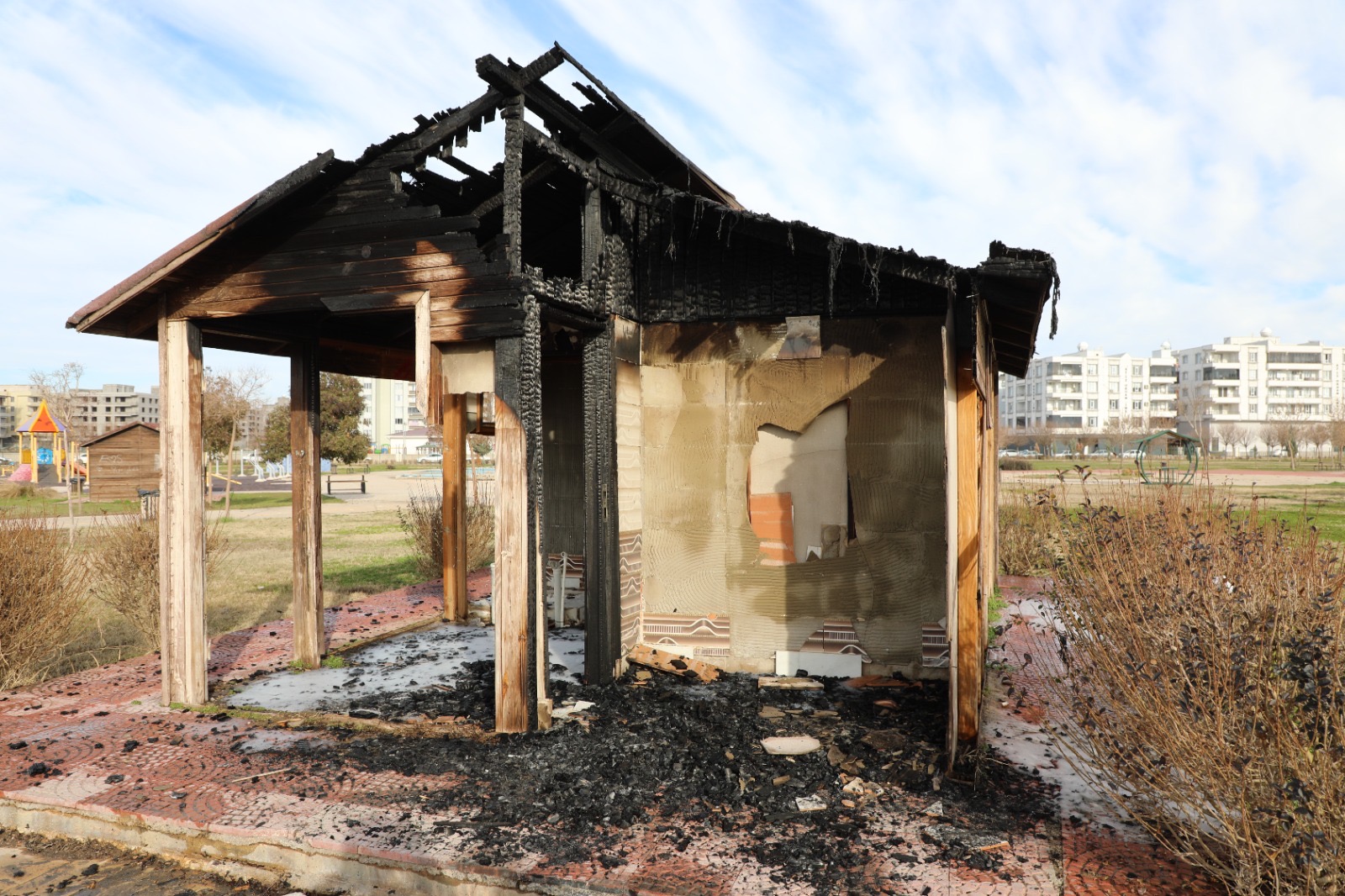 Viranşehir Yenişehir Mahallesi’nde bulunan 53 dönümlük parkta sabaha karşı çıkan yangın, mahalle sakinlerini tedirgin etti. Edinilen bilgilere göre, kimliği henüz belirlenemeyen kişi ya da kişiler tarafından çıkarıldığı iddia edilen yangın, park içerisinde bulunan çardakta hasara yol açtı.Sabah saatlerinde parkta dumanları fark eden vatandaşlar durumu hemen itfaiye ekiplerine bildirdi. Olay yerine kısa sürede gelen ekiplerin müdahalesiyle yangın kontrol altına alınarak söndürüldü. Yangında can kaybı ya da yaralanma yaşanmazken, çardakta maddi hasar meydana geldi.Viranşehir Belediyesi yetkilileri, 53 dönümlük parkta çıkan yangın sonrası inceleme başlatıldığını ve zarar tespit çalışmalarının sürdüğünü açıkladı. Yaşanan olayın üzüntü verici olduğunu belirten yetkililer, parkların toplumun ortak kullanım alanı olduğuna dikkat çekti.Yetkililer, “Parklarımız nefes aldığımız, dinlendiğimiz ve birlikte yaşamı paylaştığımız alanlardır. Bu alanları korumak hepimizin sorumluluğudur. Daha temiz, daha huzurlu ve daha yaşanabilir bir kent için ortak yaşam alanlarımıza birlikte sahip çıkalım” mesajını verdi.Olayla ilgili soruşturma başlatıldı.