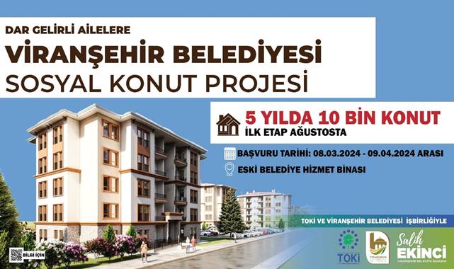 Viranşehir Belediye Başkanı Salih Ekinci; Sosyal Konut projesi ile ilgili yaptığı açıklamada;“İlçe tarihinin en büyük sosyal konut projesi çerçevesinde vatandaşımız, 5 günde 3 bin 500’ü aşkın rekor bir başvuruyla projeyi sahiplendi “dedi.