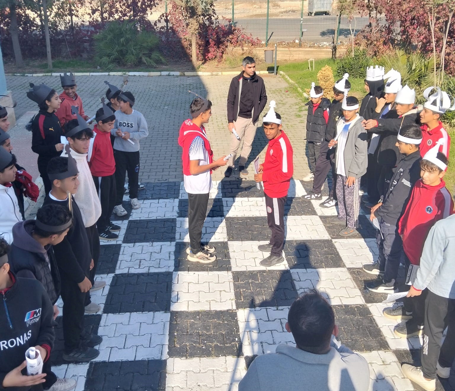 Viranşehir Spor Lisesi, öğrencilerin hem zihinsel hem de fiziksel becerilerini geliştirmek için “Canlı Satranç Arenası” ile yenilikçi bir eğitim projesi başlattı. Bigep kapsamında öğrenciler, satranç taşlarını canlandırarak hem oyunun kurallarını öğreniyor hem de stratejik düşünme ve problem çözme becerilerini güçlendiriyor. Etkinlik, takım çalışması, iletişim ve liderlik gibi sosyal becerilerin gelişimine de katkı sağlıyor.Viranşehir Spor Lisesi, Başarıyı İzleme ve Geliştirme Projesi Bigep kapsamında öğrencilerin hem zihinsel hem de fiziksel becerilerini geliştirmeyi amaçlayan yenilikçi bir projeyi hayata geçirdi. Görsel Sanatlar Öğretmeni Dilara Polat öncülüğünde yürütülen proje, ile öğrenciler okul bahçesindeki Canlı Satranç Arenası kuruldu, öğrenciler satranç alanı üzerinde, satranç taşlarını canlandırarak satranç oynuyorlar.3 aylık bir dönemi kapsayan proje ile, satranç oyunu okul bahçesine çizilen dev bir satranç alanı üzerinde gerçekleştiriliyor. Öğrenciler, piyon, kale ve vezir gibi taşların hareketlerini bizzat deneyimleyerek satranç kurallarını somut bir şekilde öğreniyor. Böylece soyut kurallar, öğrencilerin deneyimiyle daha anlaşılır ve kalıcı hale geliyor.Projeye, Görsel Sanatlar Öğretmeni Dilara Polat’ın yanı sıra diğer Bigep öğretmenleri; Rehberlik Öğretmeni Şevval Çelik ve İngilizce Öğretmeni Muhammet Baki Keş destek verirken, Matematik Öğretmeni Kadir Yaman da etkinliğe katkı sağladı. Okul Müdürü Mehmet Galip Denk de dev satranç arenası etkinliğine gerçekleştirilmesine önayak olarak destek sağladı.